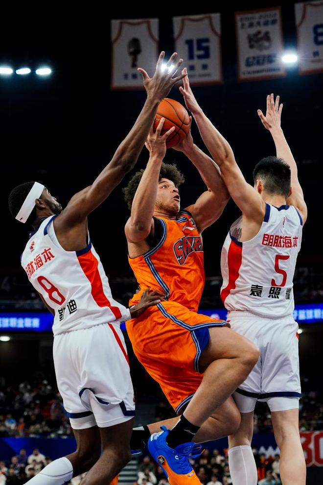 1月27日,CBA常規賽第20輪,上海久事男籃主場迎戰廣州朗肽海本,以95:78力克對手。