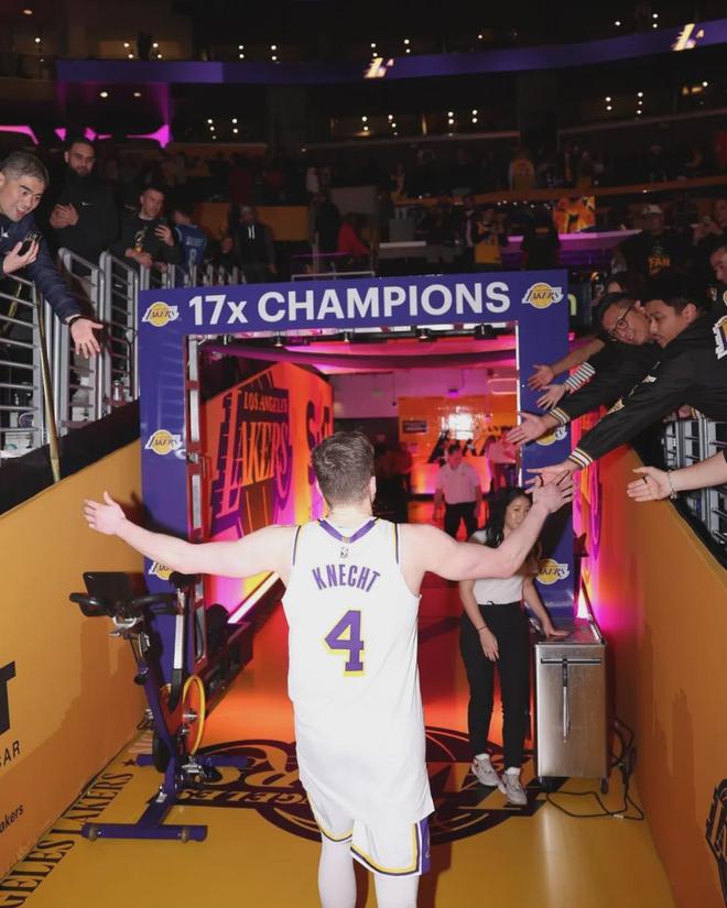 作為對比,新秀賽季克內克特為湖人出戰78場,其中16場首發。場均出戰19.2分鐘,得到9.1分2.8籃板0.8助攻0.3搶斷0.5失誤,三項命中率:46.1%,37.6%,76.2%。2025年2月,湖人曾用克內克特去換馬威,后來交易取消。