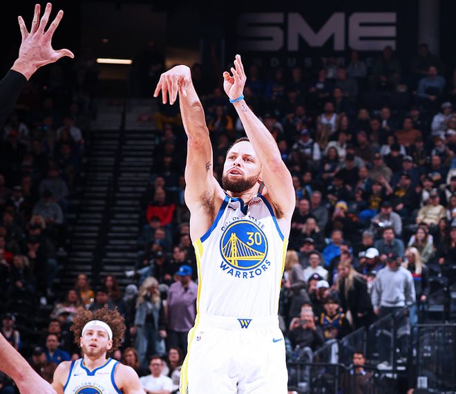 勇士隊前往客場挑戰爵士隊,爵士隊全民皆兵,與勇士隊瘋狂對轟。爵士全隊以39.5%的命中率轟進15記三分球,勇士全隊以42.6%的命中率轟進23記三分球,勇士輕松取得一場16分大勝。與此同時,庫里完成一項新里程碑。據NBA官網數據統計,此役過后,庫里生涯常規賽總得分來到26424分,超越皮爾斯(26397分)升至NBA歷史第19位,距離排在第18位的鄧肯(26496分)僅差72分。