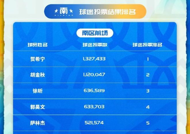 其實翻看票數統計,徐昕已經非常接近自己生涯首次全明星首發的席位,他的球迷選票有636589票 ,高居南區前場的第3,力壓633703票的郭昊文。
