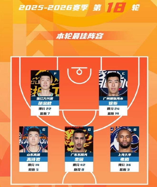 正因為有這樣精彩的表現以及對于比賽勝負的巨大影響力,徐昕在1月24日入選了本賽季CBA第18輪常規賽的最佳五人陣容。