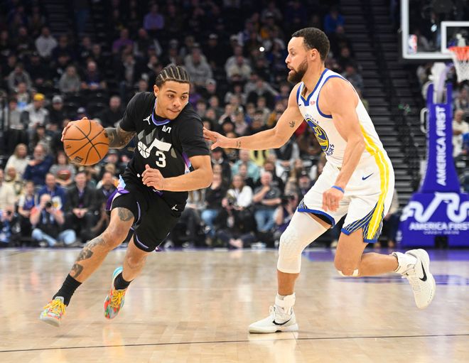 這場比賽勇士多位核心復出,球隊的攻防兩端都打得有聲有色,庫里也完成了超越皮爾斯成為歷史得分榜第19位。梅爾頓、霍福德都連續命中三分,就連桑托斯登場都有妙傳,可見爵士隊的防守強度太差。爵士這邊進攻端還是依靠喬治與馬爾卡寧這兩點效果也沒有多好,首節打完勇士40-29領先爵士。