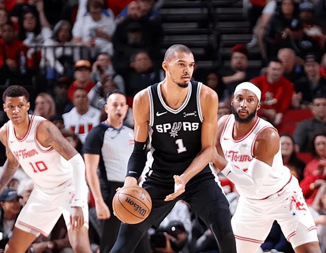 第四節(jié)決戰(zhàn),文班亞馬跳投再中連拿9分,馬刺末節(jié)開局11-0反超火箭9分。申京投籃落地輕微崴腳回更衣室處理,隨后再次回到場上。文班亞馬補防排球大帽杜蘭特,火箭末節(jié)17中3僅拿10分,馬刺打出23-10已經(jīng)領(lǐng)先到11分,最終,馬刺111-99完成16分大逆轉(zhuǎn),本賽季雙殺火箭。
