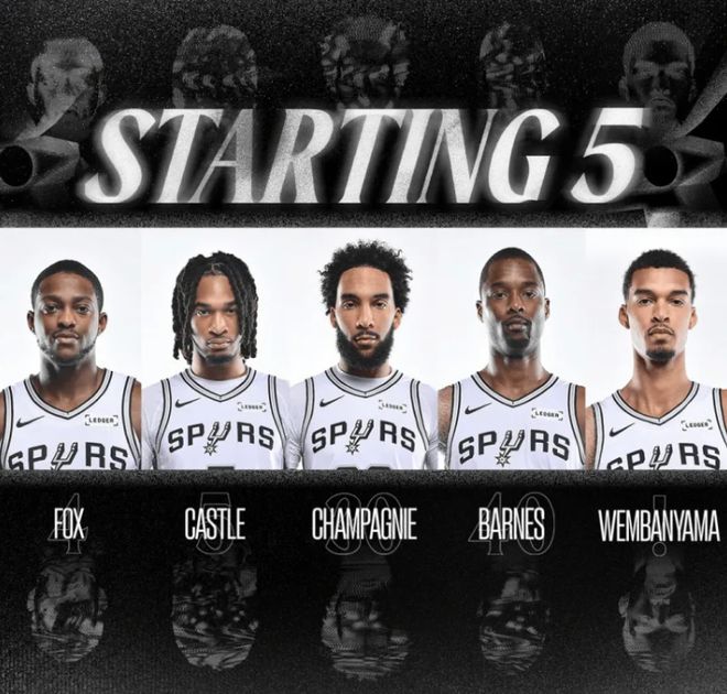 首發(fā)陣容方面,馬刺隊這邊,索漢因傷缺陣,主帥排出的最新首發(fā)五人組為:??怂?、卡斯爾、尚帕尼、巴恩斯、文班亞馬;火箭隊這邊,范弗利特和亞當斯賽季報銷,首發(fā)陣容為:阿門-湯普森、塔里-伊森、凱文-杜蘭特、小賈巴里-史密斯、阿爾佩倫-申京。