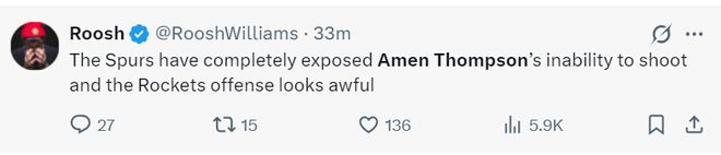 火蜜:火箭就不該讓阿門打控球后衛(wèi),這種嘗試應(yīng)該放棄了。