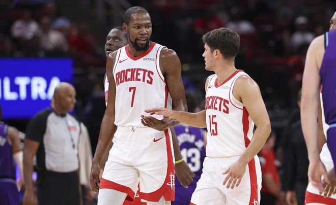 火箭隊這場失利的主要原因在哪?誰是輸球的罪臣呢?個人認為今天比賽,僅有1個人的表現可以全身而退,另外有兩人必須要為失利負責。首先來看全身而退的球員,那就是杜蘭特。今天杜蘭特出戰37分鐘,17中8砍下24分2板6助,他是今天火箭上半場開局不錯的關鍵因素,已經表現的非常好了。末節比賽沒有站出來也情有可原,一是因為末節比賽火箭還是沒有進攻戰術,就知道讓阿門去打,球都到不了他那。二是作為一個37歲的老將,烏度卡這么用,怎么一直保持高效?