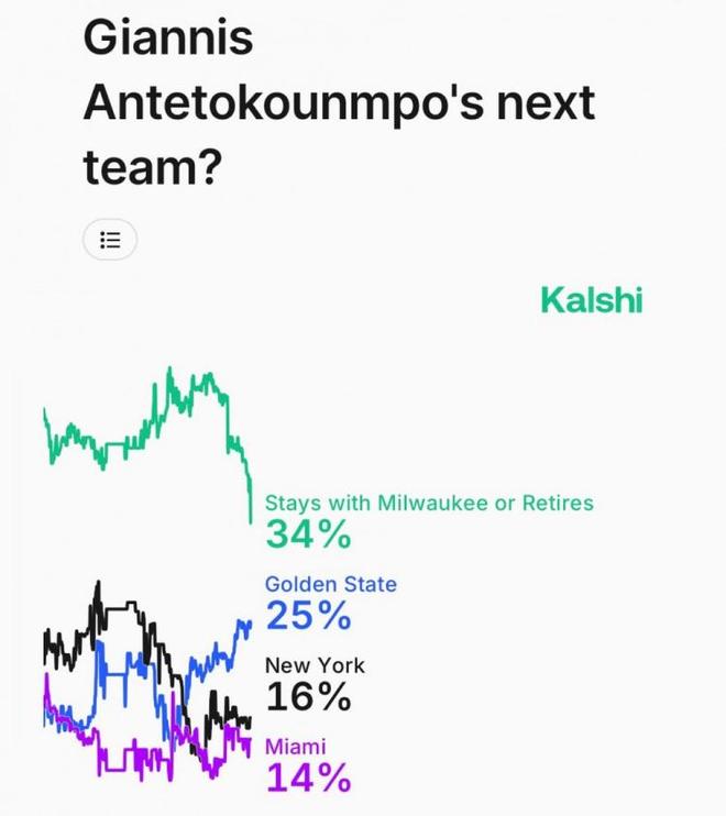 NBA常規(guī)賽還在如火如荼進(jìn)行中,在巴特勒?qǐng)?bào)銷(xiāo)之后,勇士本賽季的爭(zhēng)冠希望也跌入冰點(diǎn)。目前字母哥已經(jīng)不愿意再繼續(xù)留在雄鹿,也向球隊(duì)提出了交易。只要提到字母哥換隊(duì),相信其余29隊(duì)絕對(duì)都是有意的,他也是足夠改變聯(lián)盟決定改變聯(lián)盟方向的球員。今天早些時(shí)候,某機(jī)構(gòu)還更新了字母哥的下家概率,其中34%留在雄鹿,25%去勇士,16%尼克斯,14%熱火,6%森林狼。