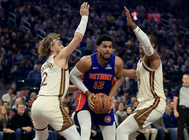 次節比克斯塔夫居然用全替補跟勇士打,全替補活塞還拉開到11分。追夢不滿自己切球被吹犯規噴裁判再度吃到一個技術犯規,桑托斯過來命中一個三分球,奧薩爾兩罰不中桑托斯一人連拿8分打停活塞。霍福德長兩分命中,坎寧安助攻杜倫暴扣,奧薩爾中投都進了,活塞一波小高潮再度拉開分差,半場打完活塞77-64領先勇士。