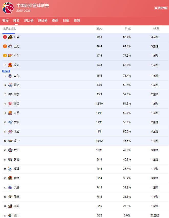 CBA最新排名: