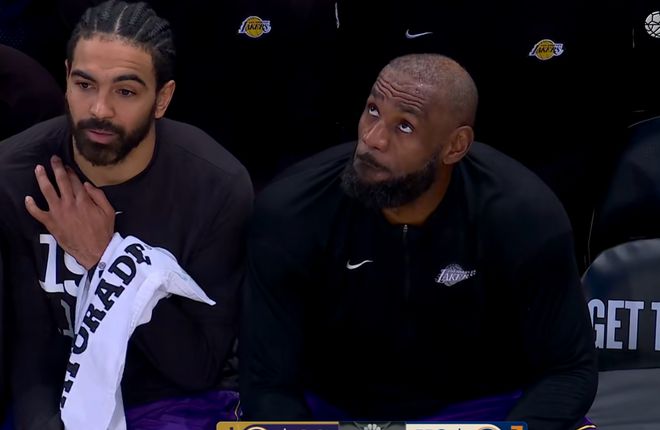 當時可以看到,人家尼克斯全隊5個人在詹姆斯去上籃的時候,都已經不防守了,就看著他刷兩分,因為知道這個兩分是改變不了局面的兩分,你去刷這個兩分沒有意義,這就是無非就是得分和數據我要帶走,勝利我不要的意思了。
