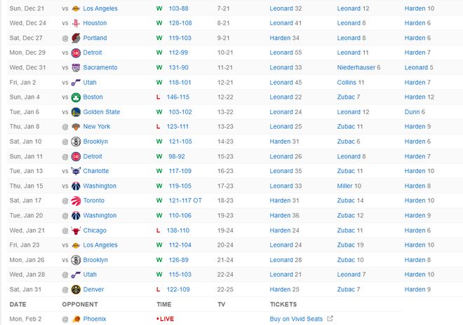 此役拿下勝利后,快船隊在過去的21場比賽拿到了17勝4負的傲人戰績,快船同期戰績依舊是聯盟第一的存在,快船已經來到23勝25負,快船距離50%的勝率又只差2場了。