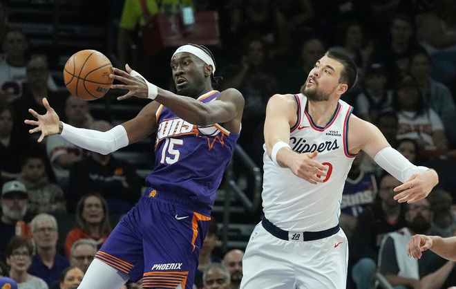 快船與太陽此役都不是全陣容,快船缺少了哈登,太陽缺少了布克、格林,開場兩隊的進攻效率都不高,整個上半場都是拼防守快船也只領先6分,轉折點是在第三節,太陽在第三節崩盤了(有點湖人三節崩的意思),第三節太陽28-36直接被拉開分差。