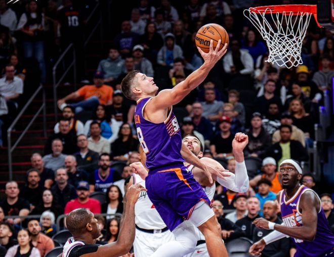 中段祖巴茨高舉高打,吉萊斯皮和科林斯外線對狙,奧尼爾肘擊祖巴茨,被吹一級惡意犯規,祖巴茨真怒了,直接坐打生吃馬威!吉萊斯皮續上三分后,鄧恩左手打阿倫脖子,也吃到一級惡犯!后半段古德溫和阿倫繼續下三分雨,危急時刻祖巴茨和米勒內外開花,三節打完,快船85-71領先太陽。決戰第四節,倫納德高難度突破上籃打3分,隨后米勒續上三分球,分差到20分!此后米勒和巴圖姆繼續外線轟炸,大洛背扣,快船最多領先23分。太陽一直在努力追分,倫納德跳投穩定節奏。