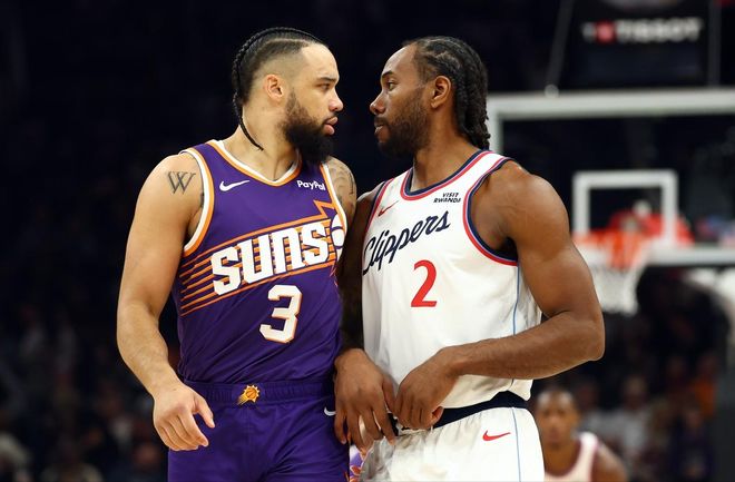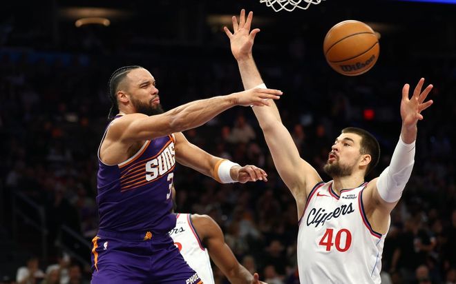說回比賽本身,原本因?yàn)楣堑娜毕齑倪M(jìn)攻輪轉(zhuǎn)還是有所影響的,上半場(chǎng)不過和太陽斗了個(gè)旗鼓相當(dāng)。易邊再戰(zhàn)后,冠軍教頭泰倫-盧開始了他的showtime,他令旗一揮,擺出了祖巴茨+大洛佩茲的雙塔陣容,就是明牌要欺負(fù)你快船沒有大中鋒坐鎮(zhèn)了。此舉不可謂不冒險(xiǎn),畢竟太陽這場(chǎng)的三分投射效率還不錯(cuò),外線46投19中,三分命中率也有41.3%,但盧指導(dǎo)吃準(zhǔn)了外線火力也就這樣,比賽得籃板者才得天下。