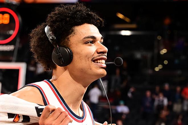 桑德斯出生于2002年5月,現(xiàn)年23歲,是今年NBA選秀大會(huì)中快船在次輪第51順位選中的來(lái)自?xún)?nèi)華達(dá)大學(xué)的大五鋒線(xiàn)球員。根據(jù)選秀大會(huì)前的聯(lián)合試訓(xùn)體測(cè)環(huán)節(jié)中的數(shù)據(jù),桑德斯的裸足身高為200.7cm,臂展為203.8cm,站立摸高為261.6cm,體重為92.2kg。在上賽季的NCAA賽場(chǎng),桑德斯總共代表所在的內(nèi)華達(dá)大學(xué)出場(chǎng)33次,場(chǎng)均出場(chǎng)時(shí)間達(dá)到了31.7分鐘,場(chǎng)均數(shù)據(jù)為15.8分3.9籃板4.5助攻1.1搶斷0.3蓋帽,還有1.8次失誤和2.2次犯規(guī),投籃命中率46%,三分命中率34.2%,罰球命中率79.5%。本賽季開(kāi)季至今,桑德斯在前48場(chǎng)比賽中總共出場(chǎng)40次,場(chǎng)均出場(chǎng)時(shí)間達(dá)到了21.3分鐘,場(chǎng)均數(shù)據(jù)為7分2.5籃板1.6助攻0.6搶斷0.1蓋帽,還有1.4次失誤和2.2次犯規(guī),投籃命中率44.9%,三分命中率39.1%,罰球命中率84.6%。