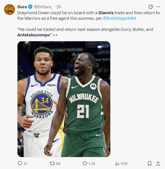 此前BrettSiegel就透露,勇士隊最多可以為字母哥送上4個首輪簽+1個首輪互換權,籌碼方面德雷蒙德-格林都已經愿意充當揚尼斯的籌碼,在下賽季合同到期后,勇士可以將追夢簽回重新搭檔庫里。