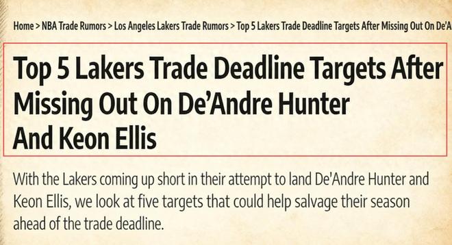 距離NBA交易截止日僅剩3天時間,但湖人依舊毫無動靜。此前有傳聞他們有意亨特和埃利斯,但在兩人互換東家后,傳聞不攻自破。那么在錯失這兩名球員之后,球員市場上還有哪些備選呢?