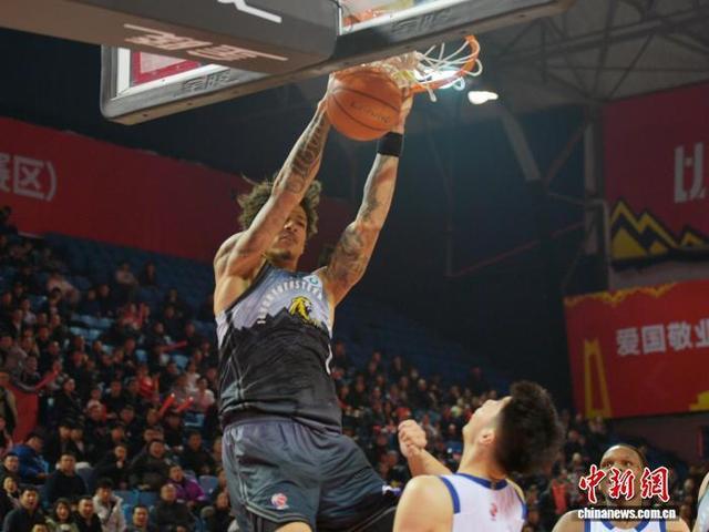 2月2日晚,吉林長春,吉林隊外援威爾遜在比賽中暴扣得分。中新社記者 張瑤 攝