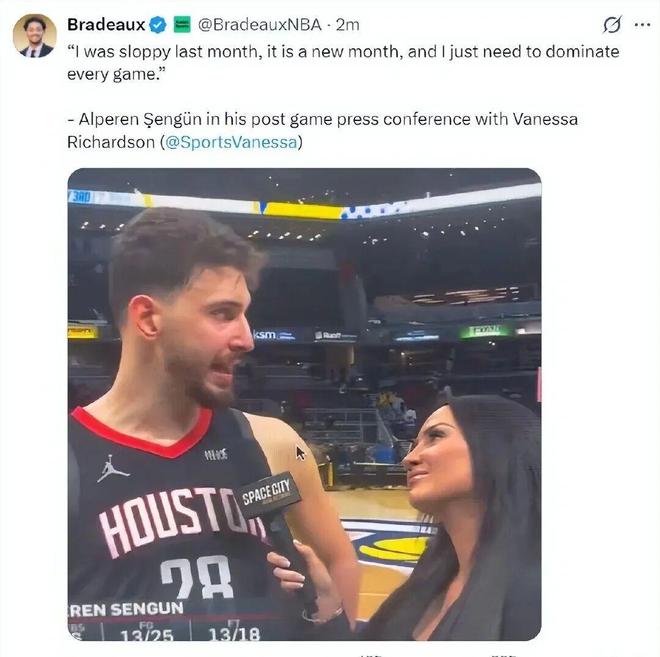 申京在賽后接受采訪也是毫無謙虛,這自信讓女記者的眼神都拉絲了