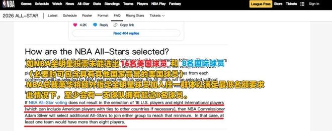 為了確定全明星賽美國隊16人、國際隊8人的最終陣容,蕭華也有權酌情增加美國或國際球員的名額。