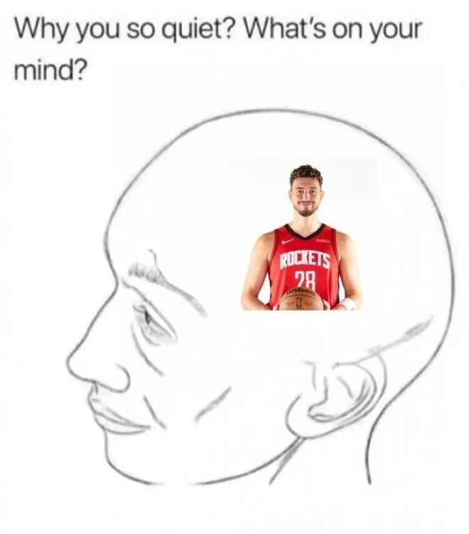火箭官方也是給點陽光就燦爛,給點河水就泛濫 ,給點顏色開染坊,直接曬出了P圖:你們咋這么安靜?你們腦子里在想啥呢?