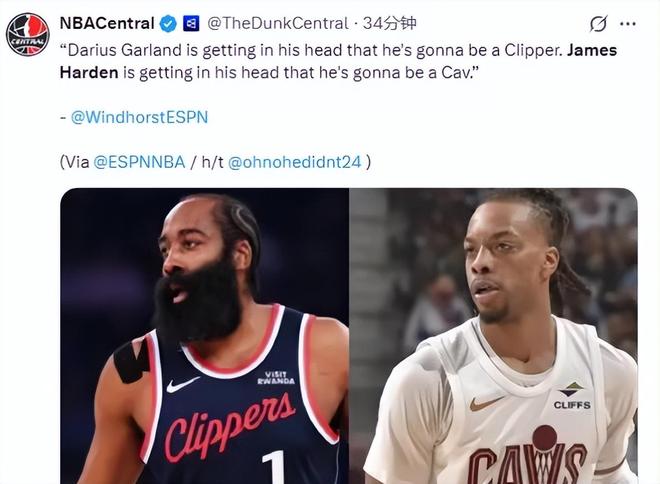 ESPN記者Brian Windhorst的最新消息:快船與騎士圍繞哈登和加蘭互換的交易,推進勢頭正不斷增強,且兩位球員都已在心理上做好換隊準備。