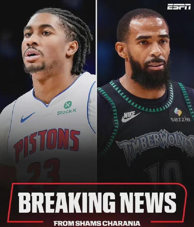 活塞得到許爾特+薩里奇+26年首輪簽互換權(來自森林狼);