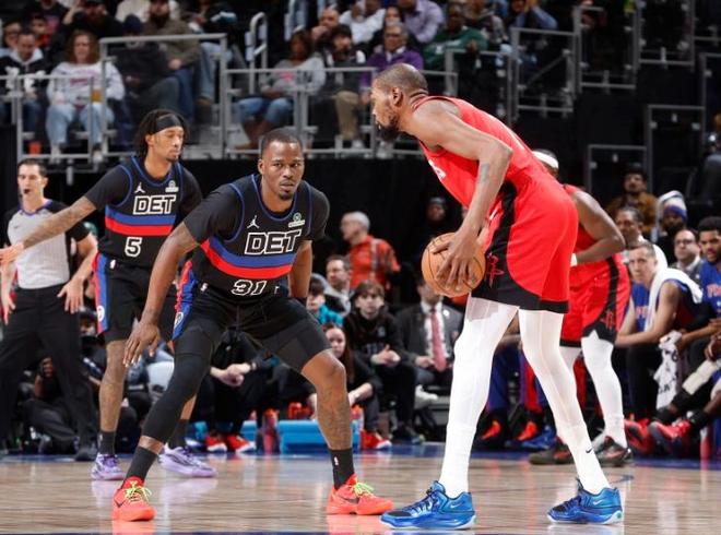 火箭去年休賽期從太陽換來杜蘭特后,目前以29勝17負的戰績穩居西部第四的位置。這份成績單相當不錯了。因為這是在核心球員范喬丹和亞當斯賽季報銷的情況下。杜蘭特幾乎以單核帶隊的姿態,扛起了球隊的進攻大旗,他的表現無可挑剔,在攻防兩端都是這樣。截至目前,37歲杜蘭特在本賽季為火箭出戰44場,全部首發,場均上場36.8分鐘,貢獻26.5分5.4籃板4.5助攻,投籃命中率高達51.4%,三分命中率達到40.8%,罰球命中率88.6%。