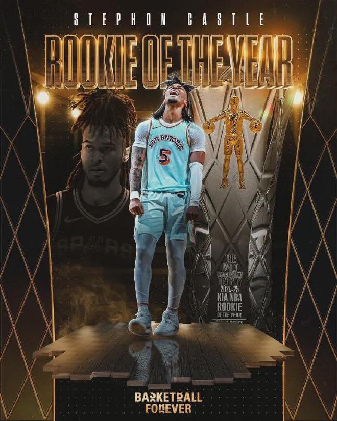 其實麥凱恩本來才是24-25賽季最強新秀,無奈該賽季僅打了23場比賽之后便遭遇左膝外側半月板撕裂直接報銷,最終由同屆的首輪第四號秀&馬刺后衛卡斯爾斬獲最佳新秀獎。