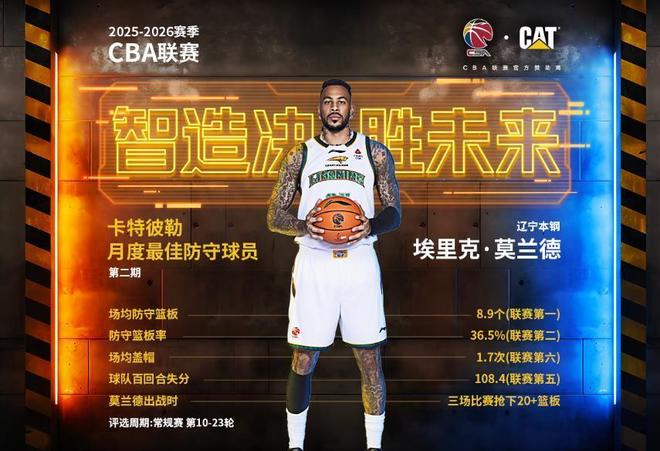 CBA這一期的月最佳防守球員給到了遼寧隊的外援莫蘭德,本賽季莫蘭德重回遼寧隊,但是場均只有7.6分10.2個籃板3.7次助攻和1.3次蓋帽的數(shù)據(jù)進(jìn)賬,投籃命中率也降至52.4%。不過在這個評選周期內(nèi)(常規(guī)賽第10-23輪)莫蘭德場均可以拿到8.9個防守籃板聯(lián)賽第一,場均防守籃板率36.5%聯(lián)賽第二,場均1.7次蓋帽聯(lián)賽第6。