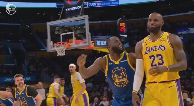勇士上半場11次助攻8次失誤,兩隊“助攻失誤比”都接近1比1。湖人兩大核心詹姆斯和里夫斯手感冰涼,詹姆斯8中2得到7+6+4,里夫斯5中1得到3+4+7。上半場最后一攻,斯潘塞迎著詹姆斯壓哨跳投打進,庫里在場邊看嗨了。