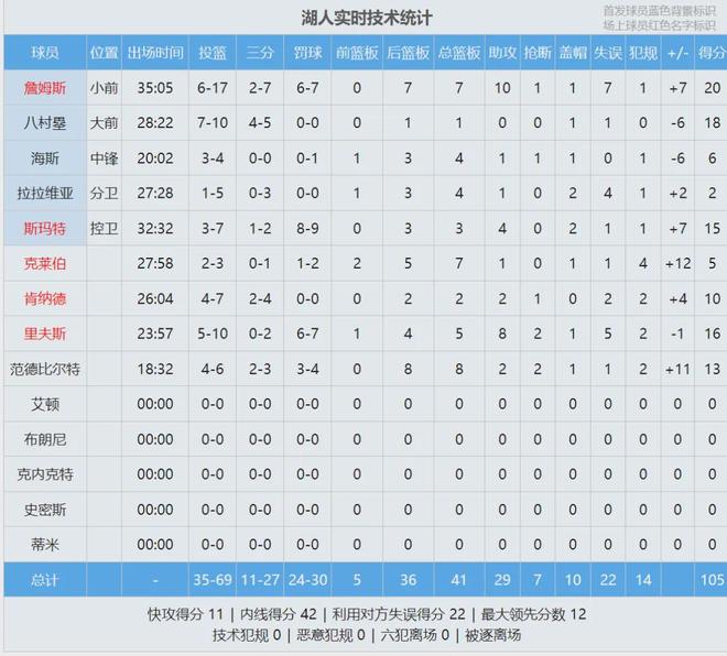 最后看看比賽數據,滿分10分,你給肯納德首秀打幾分?
