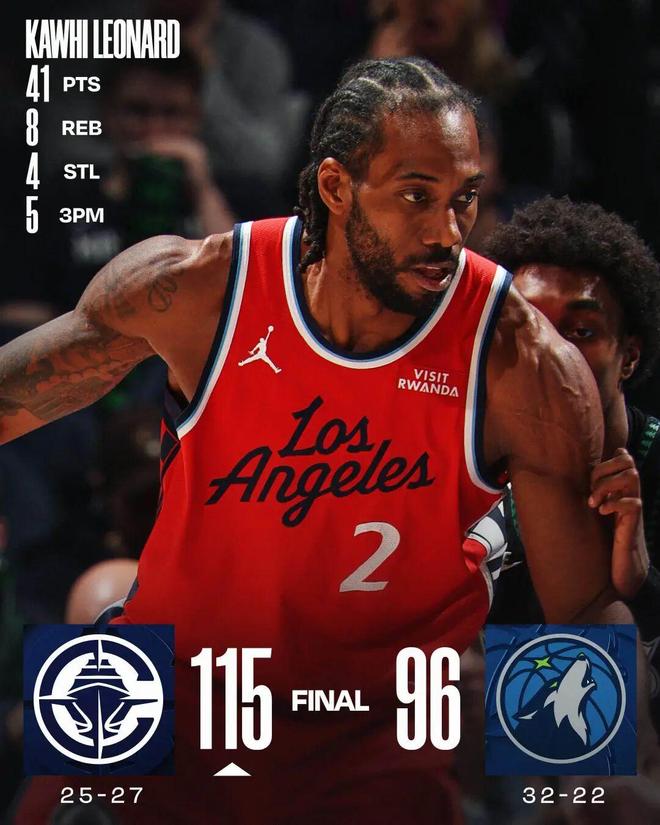 倫納德41+8+4斷 快船輕取森林狼