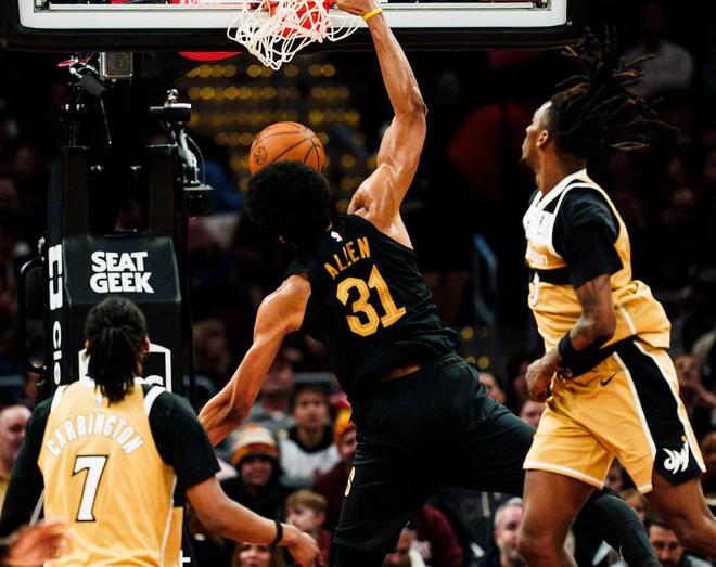 這場對陣奇才的比賽,從開局就展現了騎士的統治力。首節哈登與米切爾各砍9分,兩人一攻一傳配合默契,哈登頻頻造犯規罰球線得分,米切爾則用犀利突破終結。騎士迅速拉開到16分領先。次節,梅里爾突然爆發,他單節6投6中,三分球4中4,狂砍17分,成為球隊第二節的奇兵。內線阿倫也全面開花,籃下翻江倒海,多次完成強硬終結。即便奇才在第二節發起反撲,騎士依然穩住陣腳,為下半場的一波流奠定基礎。上半場結束時,梅里爾已經命中7記三分,命中率100%,手感火熱到仿佛巔峰期的克萊湯普森附體。下半場騎士徹底不給對手機會,分差很快來到20分以上,比賽早早失去懸念。