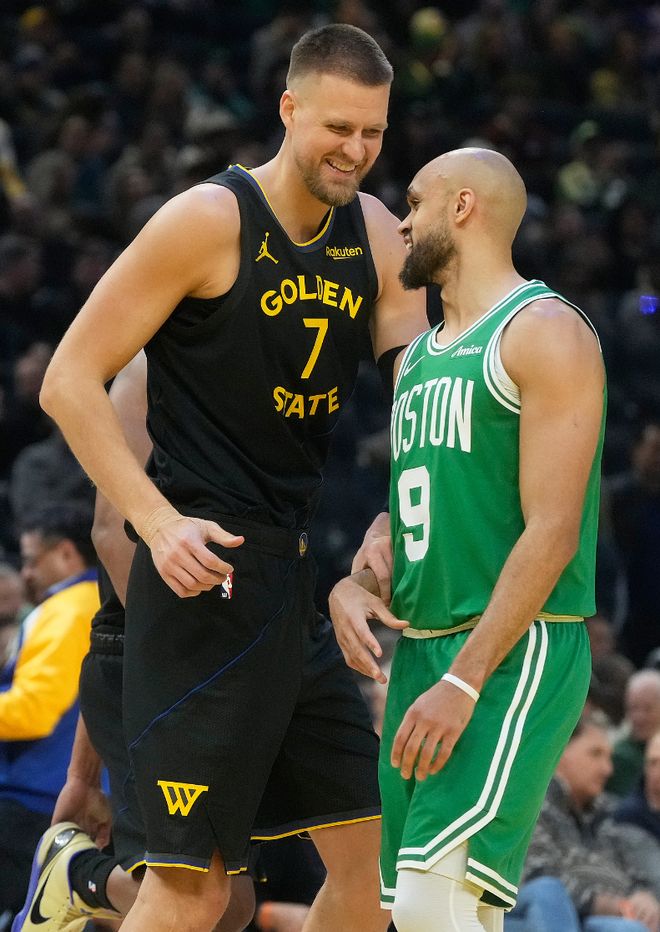 波爾津吉斯曾在23-24賽季跟隨綠凱一同奪得NBA總冠軍,隨后被綠凱放棄,但他與隊內很多球員都有著深厚的情感,賽前杰倫-布朗跟波爾津吉斯相談甚歡,第二節波神獲得登場機會,4中2+三分2中1拿到5分1籃板。