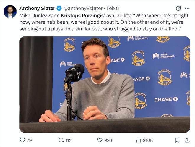 科爾也盛贊波爾津吉斯是一個頂級的空間型內線球員,而且勇士開始以他為核心打造戰術,他的類型與巴特勒不同,球隊會給他更多接球投籃的機會。