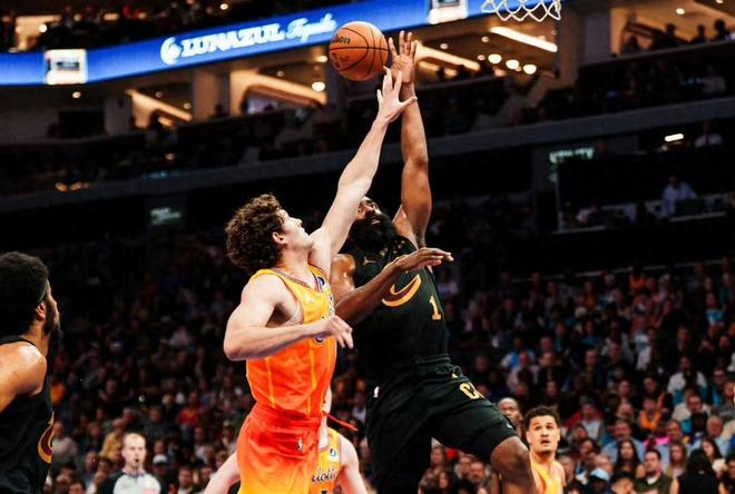 值得一提的是,雙方本場均為背靠背作戰。黃蜂上一場剛剛惜敗火箭,今天卻依然保持了極高的競技狀態,全場轟出56記三分出手,命中20球,延續了典型的“魔球”風格,他們大量依賴外線投射,一旦手感在線,便能瞬間改變比賽走勢。騎士則在外線出手21次命中10球,效率更高,但面對黃蜂這種極端投射打法,防守端天然處于被動。無論哪支球隊遇到魔球體系,都很難完全限制對手,只能通過干擾、輪轉和體能消耗來盡量降低命中率??四崤鍫柍蔀轵T士防線的最大難題,他手感火熱,幾乎無解。好在騎士在內線擁有明顯優勢:盡管莫布里因背靠背缺陣,但阿倫依然扛起單塔重任,在禁區翻江倒海,多次完成強硬終結與二次進攻,首節騎士便建立起10分領先優勢。