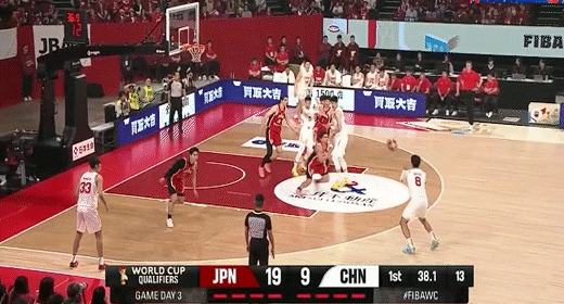 日本男籃連續前場板二次進攻得分!中國男籃15-27日本