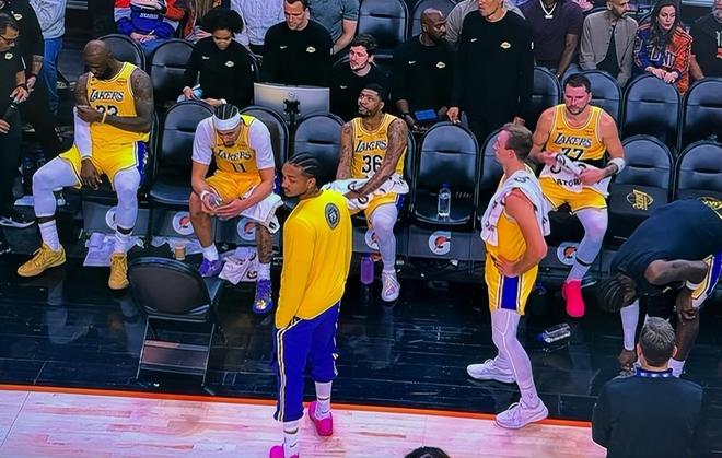 不光是這樣,現(xiàn)在又有一個湖人耐人尋味的畫面,在東契奇和詹姆斯從更衣室里走出來的時候,兩個人全程并排,但是沒有任何交流,各自低著頭往前走,也沒有互動,沒有對話。從進場開始,他們的問題就已經(jīng)擺在明面上了。這都不用說詹姆斯最后踹了東契奇一腳,也不用說他們在第4節(jié)的時候鬧分歧,進場開始倆人都已經(jīng)互相看不上了。
