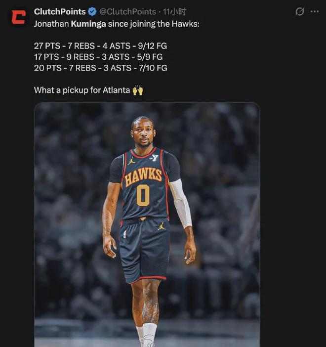 反觀與鉑金互換東家的庫明加,在老鷹混得那叫一個風生水起,目前出戰三場比賽全部取勝,場均能夠貢獻21.3分7.7板3.3助1.7斷,投籃命中率高達67.7%,三分命中率達到55.6%,直接打成了全明星前鋒水平。