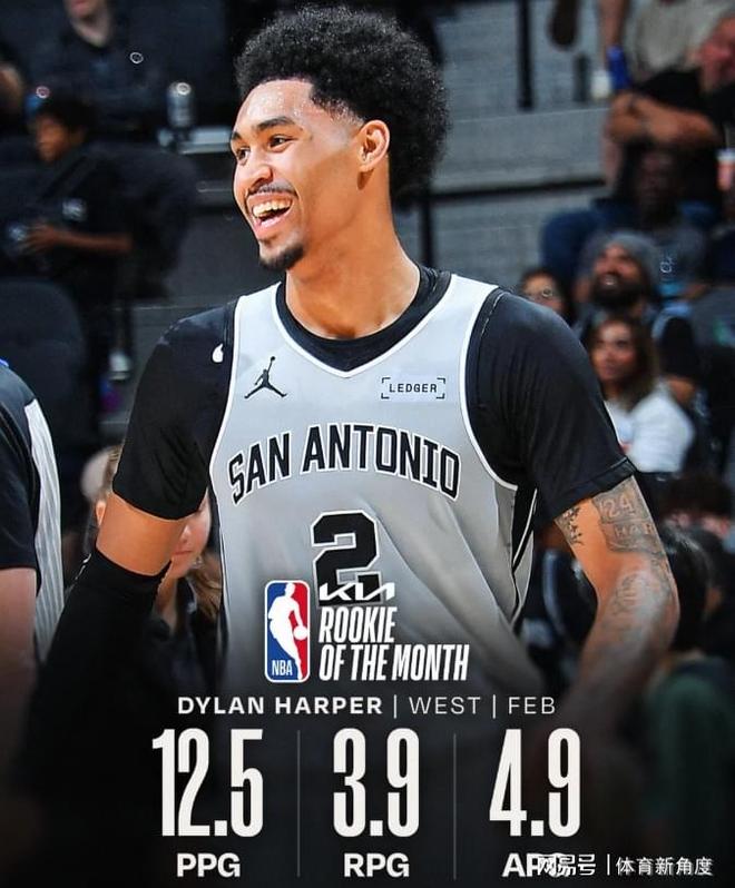 至于最佳新秀,哈珀單月場均貢獻(xiàn)12.5分、3.9個籃板以及4.9次助攻。乍一看,這數(shù)據(jù)似乎平平無奇,與東部同獲此殊榮的克努佩爾相比,更是略顯遜色。克場均能轟下21.5命中4.5記三分,三分命中率高達(dá)48.5%。然而,無奈西部新秀中表現(xiàn)突出者寥寥,且馬刺隊(duì)的戰(zhàn)績太過耀眼,這才讓哈珀脫穎而出。