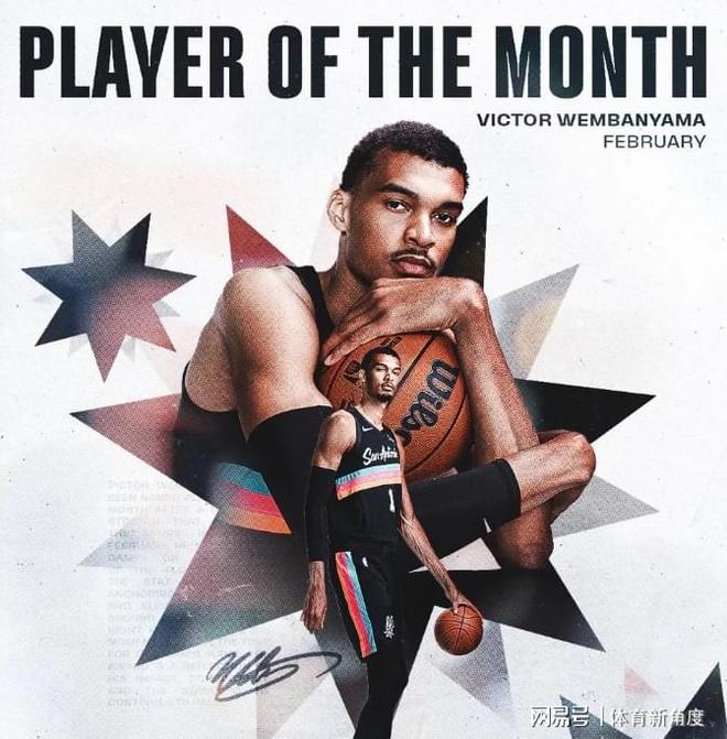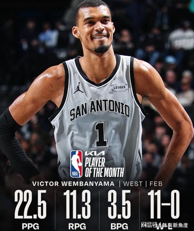 先來說說最佳球員,文班亞馬在單月里場均能砍下22.5分,摘下11.3個籃板,還能送出3.5次蓋帽,在他的助力下,球隊(duì)取得了11勝0績。這是文班亞馬職業(yè)生涯中首次榮膺月最佳球員,相信有了這“第一次”的鋪墊,未來他必將多次斬獲此項(xiàng)榮譽(yù)。