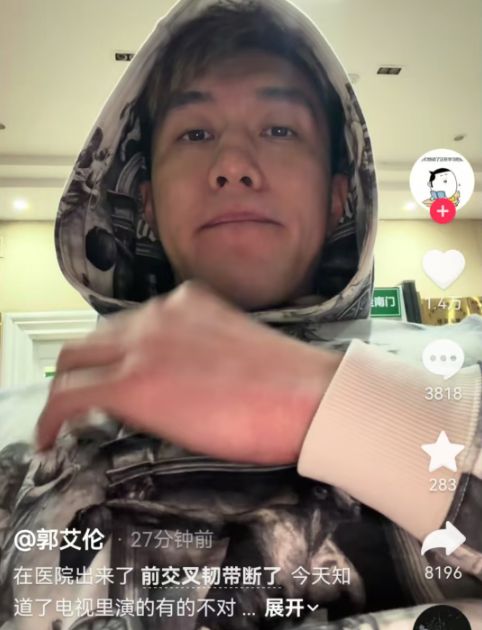 如今郭艾倫通過社媒公布傷情:“在醫院出來了,前交叉韌帶斷了,今天知道電視里演的有的不對,人在最難過絕望的時候,不是一直哭,哭完是會笑的。”