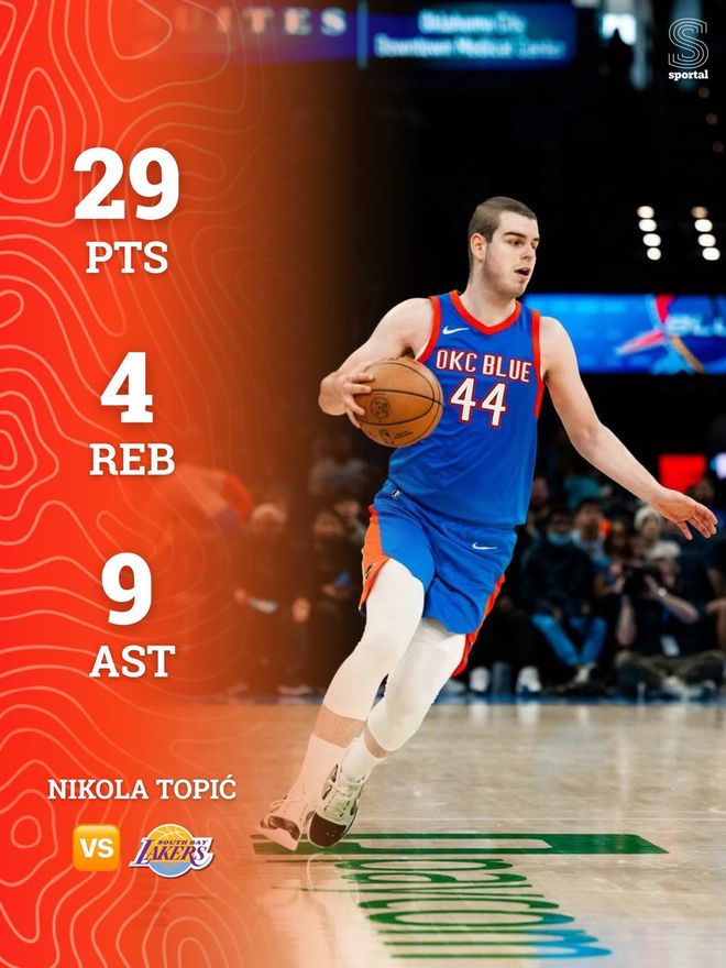 本場比賽中,雖然俄克拉荷馬城藍色輸掉了比賽,但是被雷霆下放到NBA發展聯盟賽場進行鍛煉的后場新星尼科拉-托皮奇(Nikola Topic)的表現令人刮目相看。托皮奇全場出場34分鐘,投籃18中10,三分線外6中2,罰球6中5,得到了全場最高分29分外加4籃板9助攻的數據,還有2次失誤和4次犯規,正負值為-7。托皮奇在進攻端簡直是勢不可擋,他展現出了自己超強的得分能力,他也證明了自己有著豐富的進攻手段,他也是通過各種方式拿下了大量的得分。不僅如此,托皮奇也展現出了一定的傳球能力和組織能力,他在這方面的表現同樣是值得肯定的。只是球隊絕大多數球員的表現比較一般,整體實力也有些不如對手,托皮奇即使表現不錯,他也沒有辦法幫助球隊扭轉局面。