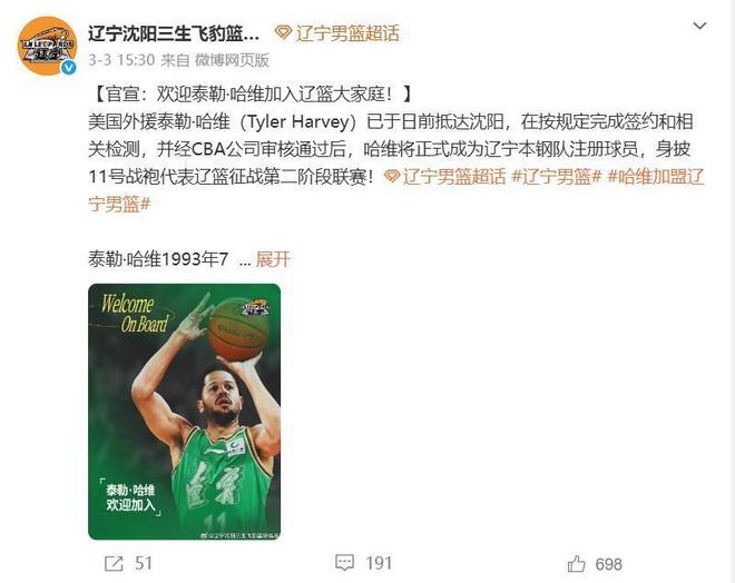昨天遼寧隊官宣了新外援布羅金頓,此前在3月3日官宣了新外援泰勒-哈維,這兩名小外援的加入將會很大程度上加強遼寧隊的后衛線,幫助球隊進入季后賽并且在季后賽里走得更遠。本賽季至今遼寧隊更換了多名外援,先后裁掉杰隆-布朗、奧利弗和亨特,新簽這兩名外援后如果不發生傷病或其他較大的變故,這個賽季應該不會更換新的外援了。