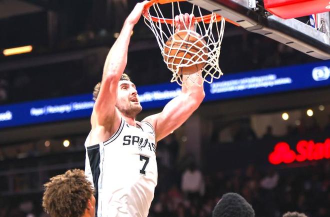 末節最后,哈珀走底線一步過掉芬尼掄起來暴扣拿2分,杜蘭特助攻順下的芬尼上籃拿2分,福克斯飛速過掉謝潑德上籃拿2分,杜蘭特傳球失誤,文班命中壓哨3分!半場打完,馬刺69-57領先火箭!半場數據,火箭,杜蘭特10分,阿門10分,謝潑德10分;馬刺,文班15分5籃板,卡斯爾12分,凱爾登12分,哈珀爆發8中7、3分4中3,得到17分,是半場之星,要知道本賽季哈珀3分命中率25.4%!