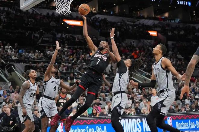 次節成為比賽的轉折點,馬刺徹底開啟進攻模式,哈珀、凱爾登、卡斯爾三個后衛,在不足5分鐘的時間里轟出20-10的進攻狂潮,直接將比分拉開。哈珀上半場狀態火熱,砍下全隊最高的17分,而文班亞馬則在攻防兩端雙線發力,不僅用扣籃和中距離得分持續施壓,更用蓋帽筑牢防守屏障。半場戰罷,馬刺已有4人得分上雙,帶著12分的領先優勢進入下半場,火箭的防守漏洞逐漸暴露,失分隱患開始顯現。