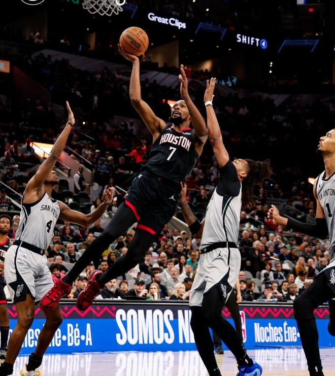 謝潑德與哈珀在外線斗法,杜蘭特跳投得手,瓦塞爾3罰全中,謝潑德遠(yuǎn)投打鐵,阿門拉桿上籃得分,隨后還有2罰全中。謝潑德、哈珀各有外線不中,芬尼史密斯又進(jìn)3分球。米奇約翰遜請(qǐng)求暫停,凱爾登約翰遜與阿門湯普森在禁區(qū)斗法,阿門2罰全中,杜蘭特單打命中,火箭反超比分。