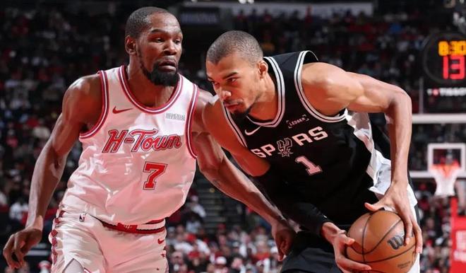 文班VS申京跳球馬刺獲得球權(quán),小賈一上來就被吹防守犯規(guī),文班亞馬面對申京直接干拔三分飚中,回過來杜蘭特中距離打鐵伊森失誤,申京單打失敗,文班亞馬突破申京挑籃馬刺5-0開局!申京空切內(nèi)線上籃得到火箭本場第一分,杜蘭特拋投比分追到4-5,文班亞馬自投自搶2+1太強了,馬刺前8分由他一人得到!罰球間隙烏度卡換下小賈阿門,上謝潑德與DFS效果不錯后者上來就命中三分,申京中距離也命中馬刺這邊卡斯?fàn)枺呷麪栠B續(xù)沖擊籃下得分12-9!隨后火箭兩次進攻不成,尚帕尼,哈珀抓住機會接連命中三分18-9,6分36秒火箭不得不暫停!暫停回來謝潑德高難度三分止血,回過來哈珀三分立馬還以顏色保持領(lǐng)先,杜蘭特中距離,瓦塞爾三分線外被犯規(guī)三分穩(wěn)穩(wěn)命中24-14分差來到10分!阿門攜手DFS一波7-0打停馬刺,節(jié)末雙方打起對攻憑借杜蘭特兩罰火箭首節(jié)33-32反超1分!