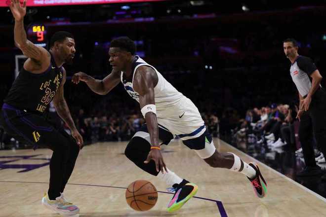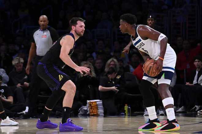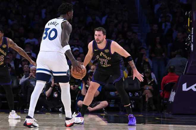 東契奇的狀態逐步提升,他第二節5中3得到8分,上半場15中5得到12+5+6,湖人前兩節以45-45持平森林狼。